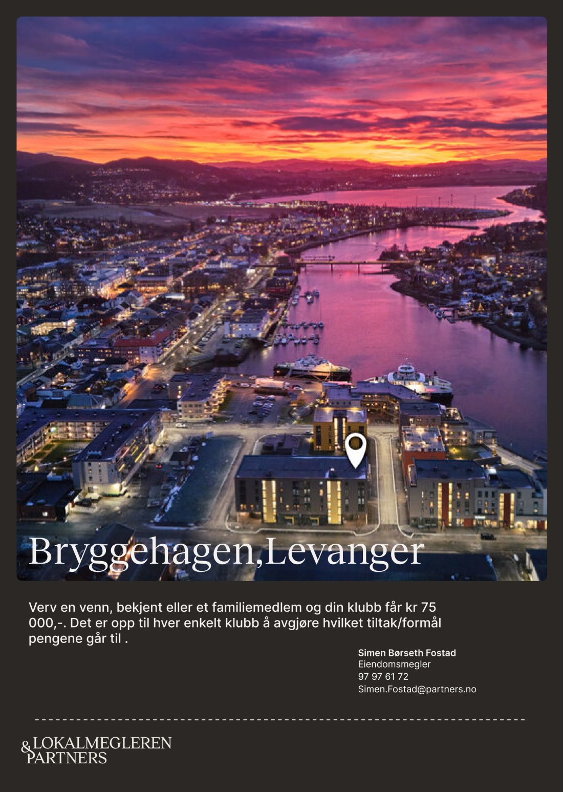 - Når interessenten kjøper leilighet på Bryggehagen, utløses et tipshonorar på 75 000 kr til idrettslaget.