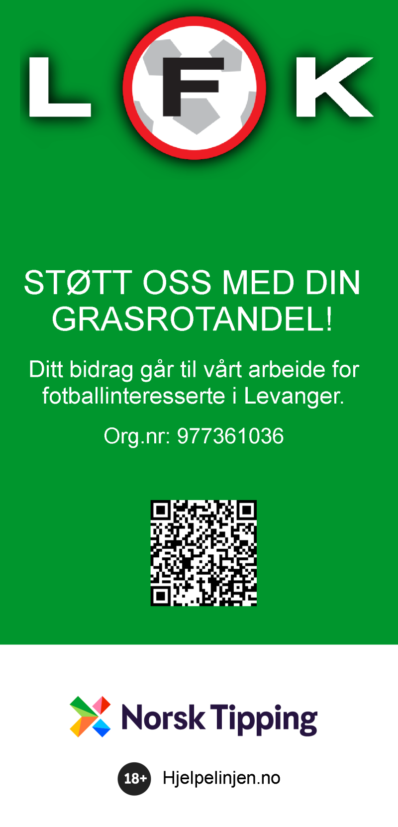 Ved å velge LFK som din grasrotmottaker, går en prosentandel av din spillinnsats direkte til klubben og vårt arbeid for barn, unge og toppfotball i Levanger